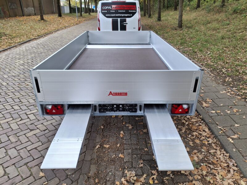 Elke Anssems MSX multitransporter is standaard uitgerust met handige functies die het gebruiksgemak vergroten. Zo zijn er stevige stalen oprijplaten van 250 cm die eenvoudig onder de bodem kunnen worden opgeborgen in geïntegreerde rijplaathouders. Daarnaast zijn de transporters voorzien van steunpoten aan de achterzijde en een handlier op steun, wat het laden en lossen aanzienlijk vergemakkelijkt. Dankzij de vele bindmogelijkheden kan de lading veilig worden vastgezet, terwijl de lage laadvloerhoogte, gecombineerd met de lange oprijplaten, voorkomt dat voertuigen met een lage bodemvrijheid problemen ondervinden bij het oprijden. De aluminium vloer is bovendien voorzien van een antislipprofiel, wat extra grip biedt en voorkomt dat lading verschuift tijdens transport.