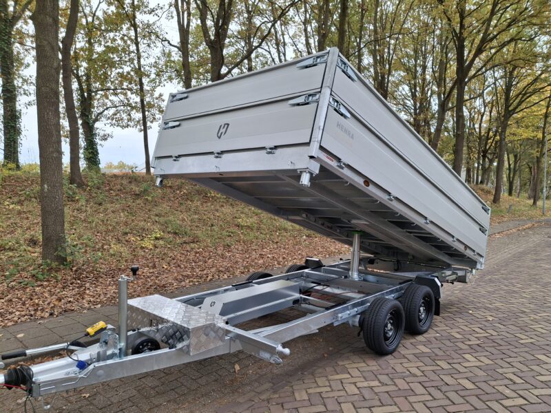 Voor het kiepen zijn de kippers voorzien van een krachtige 5-traps cilinder en een sterke hydraulische pomp, waarmee een zeer steile kiephoek kan worden bereikt. Dankzij het slimme ontwerp is de kiepzijde eenvoudig aan te passen door slechts één pen te verplaatsen. Alle gebruikte onderdelen zijn van hoogwaardige kwaliteit; de remonderdelen zijn bijvoorbeeld van het gerenommeerde merk Al-Ko.