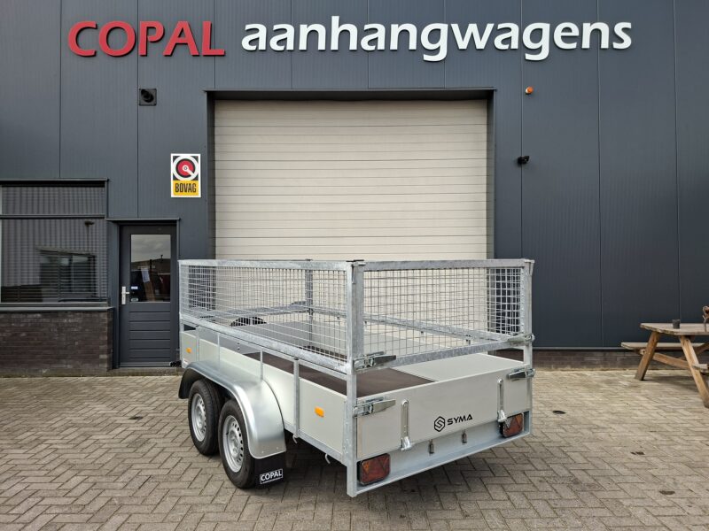 Het stalen chassis van de Syma aanhangwagen is volledig gelast in één geheel. Dit chassis wordt geheel verzonken en wordt voorzien van een stalen V-dissel voor optimale stabiliteit. Verder zijn de Syma bakwagens standaard al voorzien van: grote achterlichten, kunststof spatborden, breedteverlichting aan de voorzijde, RVS kentekenplaathouders, bindrelingen, een uitneembaar voorrek, een antislip vloerplaat en een afneembare achterklep. Ook zijn aan de buitenzijde van de aanhangwagen voldoende touwhaken gemonteerd voor het gemakkelijk vasthaken van een ladingnet of spanband. Verder zijn onder de aanhangwagens kwalitatieve assen gemonteerd van de A-merken Knott of Al-Ko.
